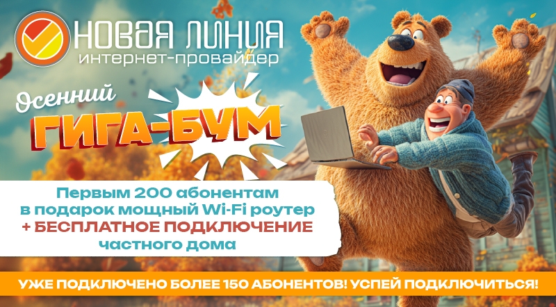 При переходе от другого провайдера и для новых абонентов компании "Новая линия" подарим: